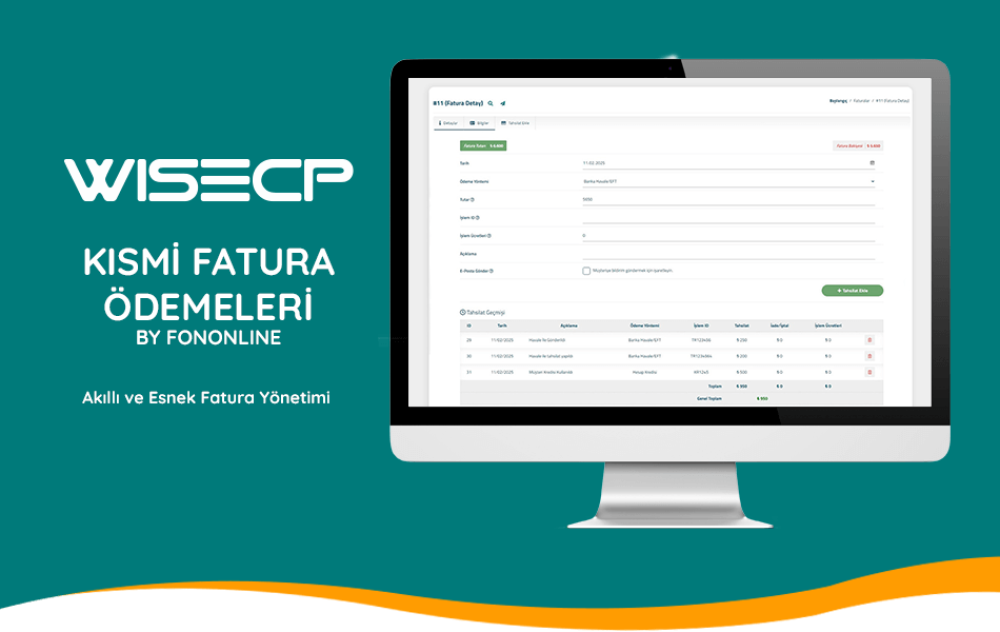 Dijital iş dünyasında esneklik ve müşteri memnuniyeti her şeydir. Wisecp Kısmi Fatura Ödemeleri , fatura tahsilat süreçlerinizi çok daha esnek ve yönetilebilir hale getirerek, hem sizin hem de müşterilerinizin finansal işlemlerini kolaylaştırır.